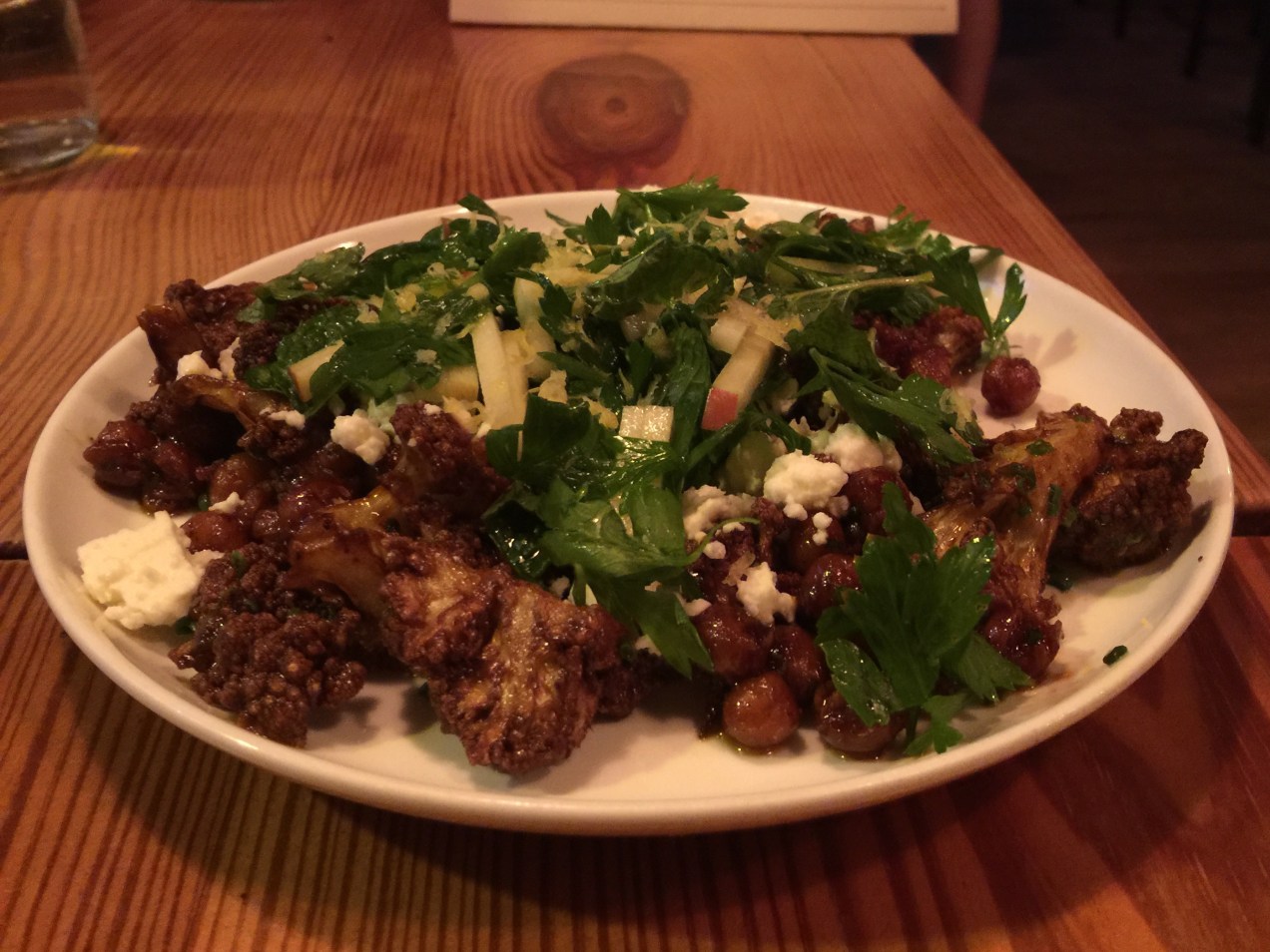 Like Loading... Trackbacks are closed, but you can post a comment. Roasted Cauliflower Ras el hanout, chickpeas, feta, herbs